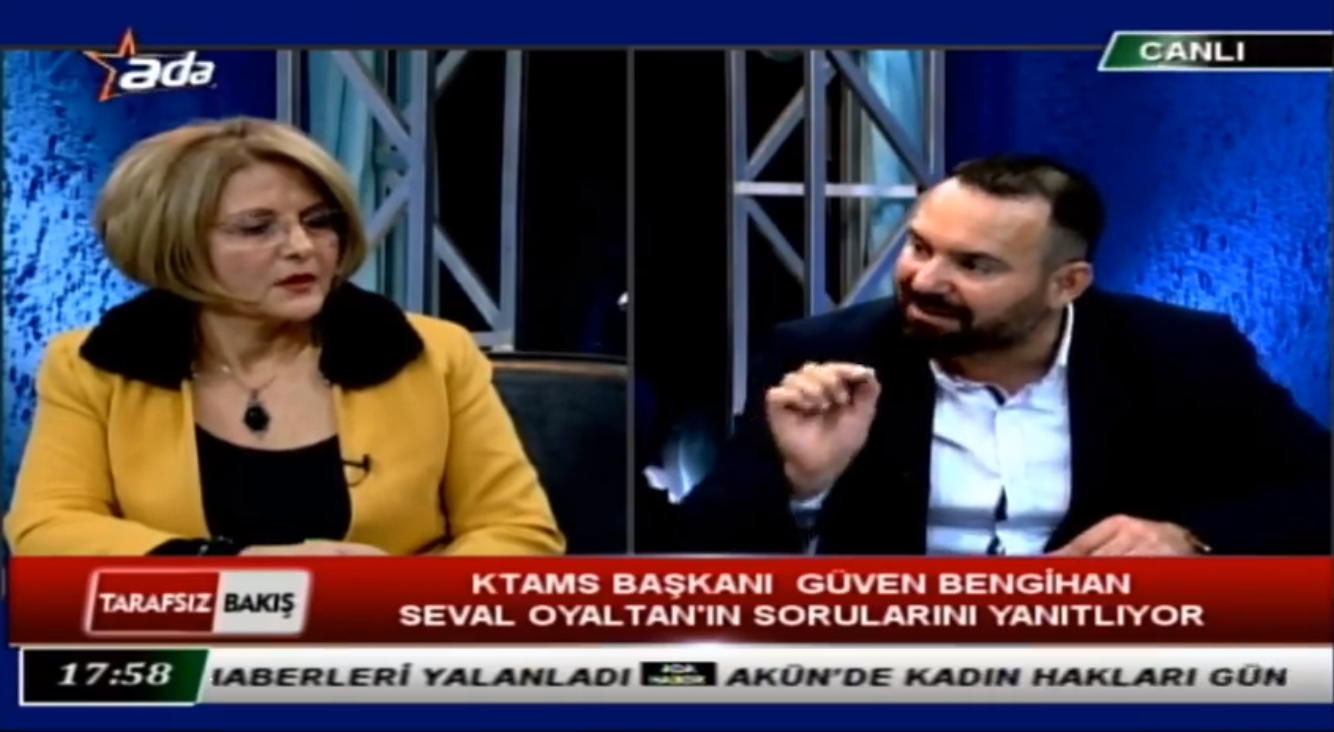 KTAMS Başkanı Güven Bengihan Ada Tv’de yayınlanan Tarafsız Bakış programına konuk oldu (video 03.12.20) 10 Aralık 2020 1,039 Görüntülenme Video’ya aşağıdaki linkten ulaşabilirsiniz. https://www.facebook.com/adatvkibris/videos/218751812964023 2020-12-10 Didem Civisilli