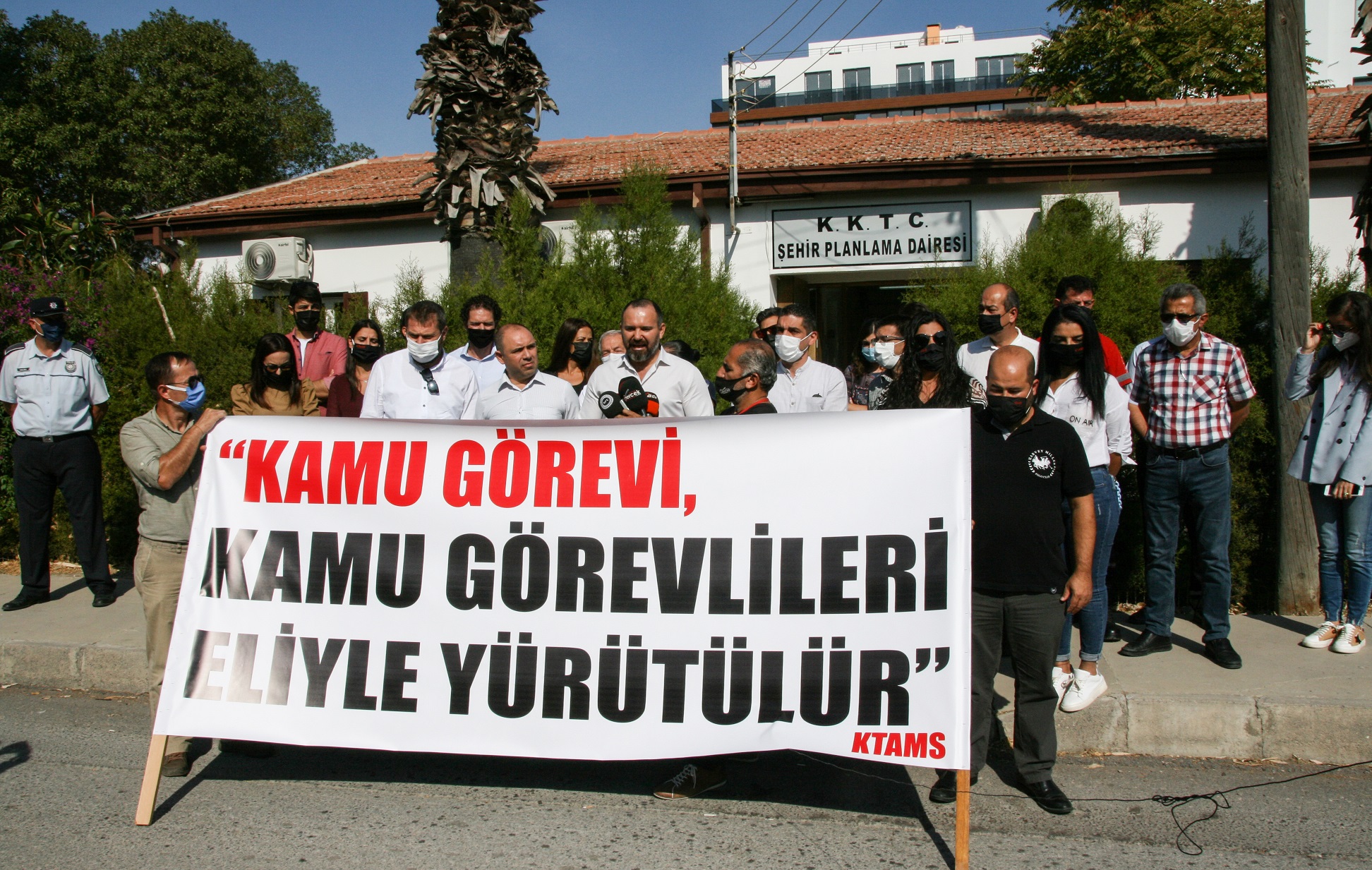 Kıbrıs Türk Amme Memurları Sendikası (KTAMS), Mağusa, İskele ve Yeniboğaziçi İmar Planı sürecinin, “Birleşik Kurul tarafından yasadışı bir şekilde onaylandığı gerekçesiyle” Şehir Planlama Dairesi’nde 1 saatlik protesto grevi uyguladı ve daire önünde basın açıklaması yaptı.