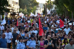 Dereboyundan başlayıp Cumhuriyet Meclisi önünde devam eden eylemde, “Hükümet istifa”, “Hükümet zamları al başına çal”, “Direne direne kazanacağız” sloganı atıldı. Eylemde, “Yoksullaşmaya ve yokoluşa hayır” pankartı açıldı.