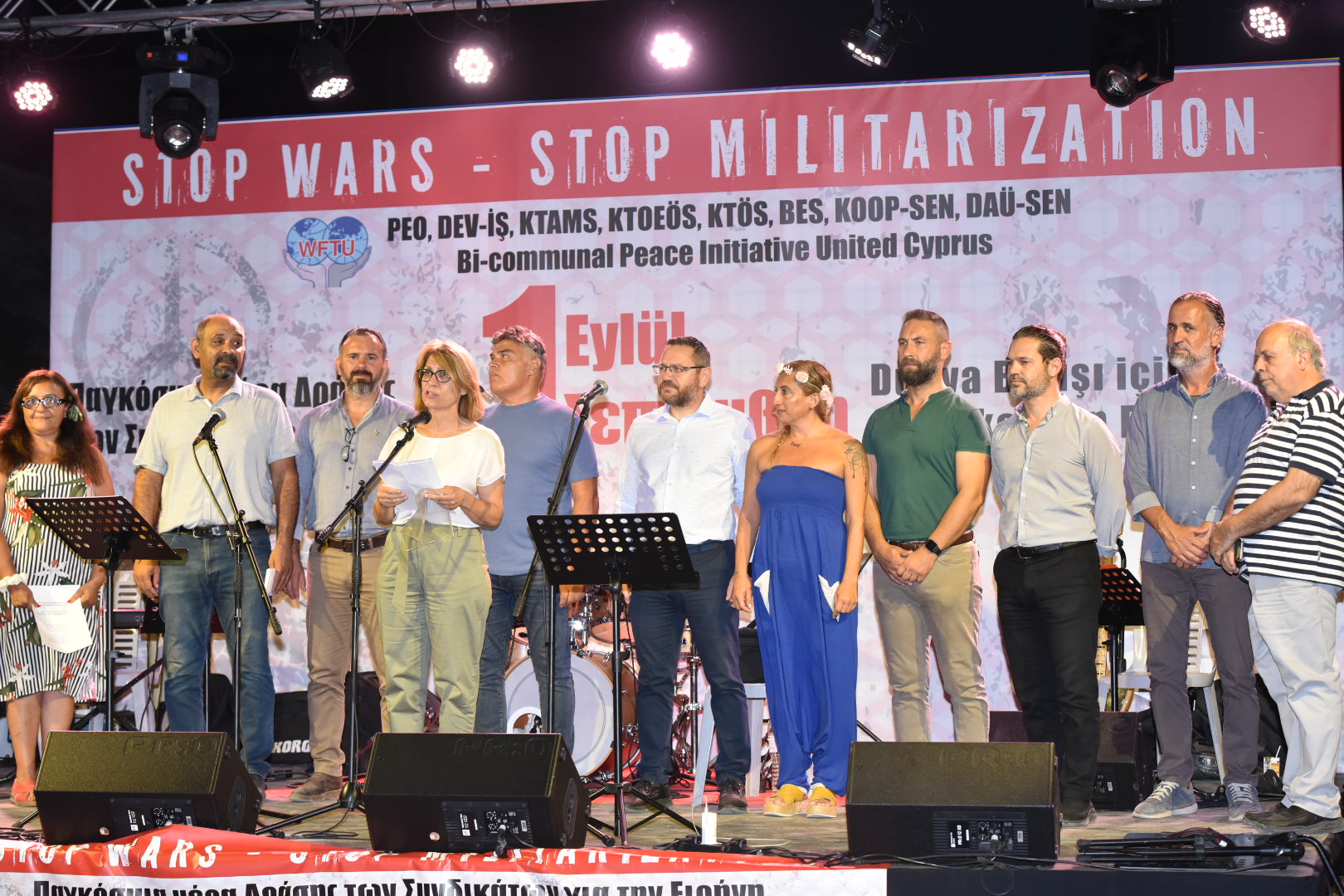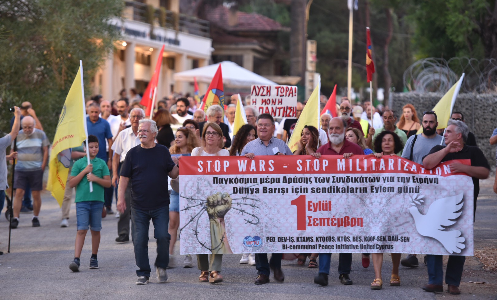 Etkinlikte ilk konuşmayı yapan Güney Kıbrıs Solcu İşçi Sendikaları Federasyonu (PEO) Genel Sekreteri Sotirulla Haralambus ise, savaşlara ve militarizasyona son verilmesi talebini aktararak konuşmasına başladı.