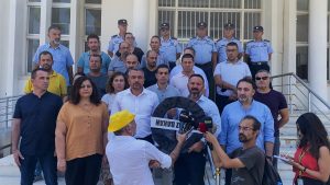 Kamuda örgütlü Kıbrıs Türk Amme Memurları Sendikası (KTAMS), Kamu Görevlileri Sendikası (KamuSen) ve Kamu İşçileri Sendikası (Kamu-İş), Trafik Dairesi Ehliyetler Birimi’ndeki personel eksikliği giderilmediği gerekçesiyle Bayındırlık ve Ulaştırma Bakanlığı kapısına siyah çelenk bıraktı.