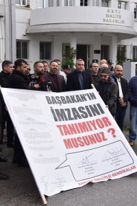 Maliye Bakanlığı önünde bir araya gelen kamuda örgütlü sendikalar, Maliye Bakanı Alişan Şan’a seslenerek, Başbakan Ünal Üstel’in kendileriyle imzalamış olduğu kamu çalışanlarının ödeneklerinin düzenlenmesine yönelik Protokol’ü görüşmek üzere sendikaları çağırması talebinde bulundu.