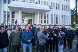 Bayındırlık ve Ulaştırma Bakanlığı önünde konuşan KTAMS Başkanı Güven Bengihan, Trafik Dairesi’ne bağlı olan Motorlu Araçlar Birimi’nde personel eksikliği, malzeme eksikliği ve otomasyon sisteminin sağlıklı çalışmaması gibi sorunlar yaşandığını anlattı.