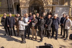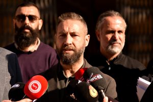 Anayasa Mahkemesi’ne saat 10.00’da yapılan başvuru öncesi sendika temsilcileri Lefkoşa Kaza Mahkemesi önünde basına açıklamalarda bulundu.