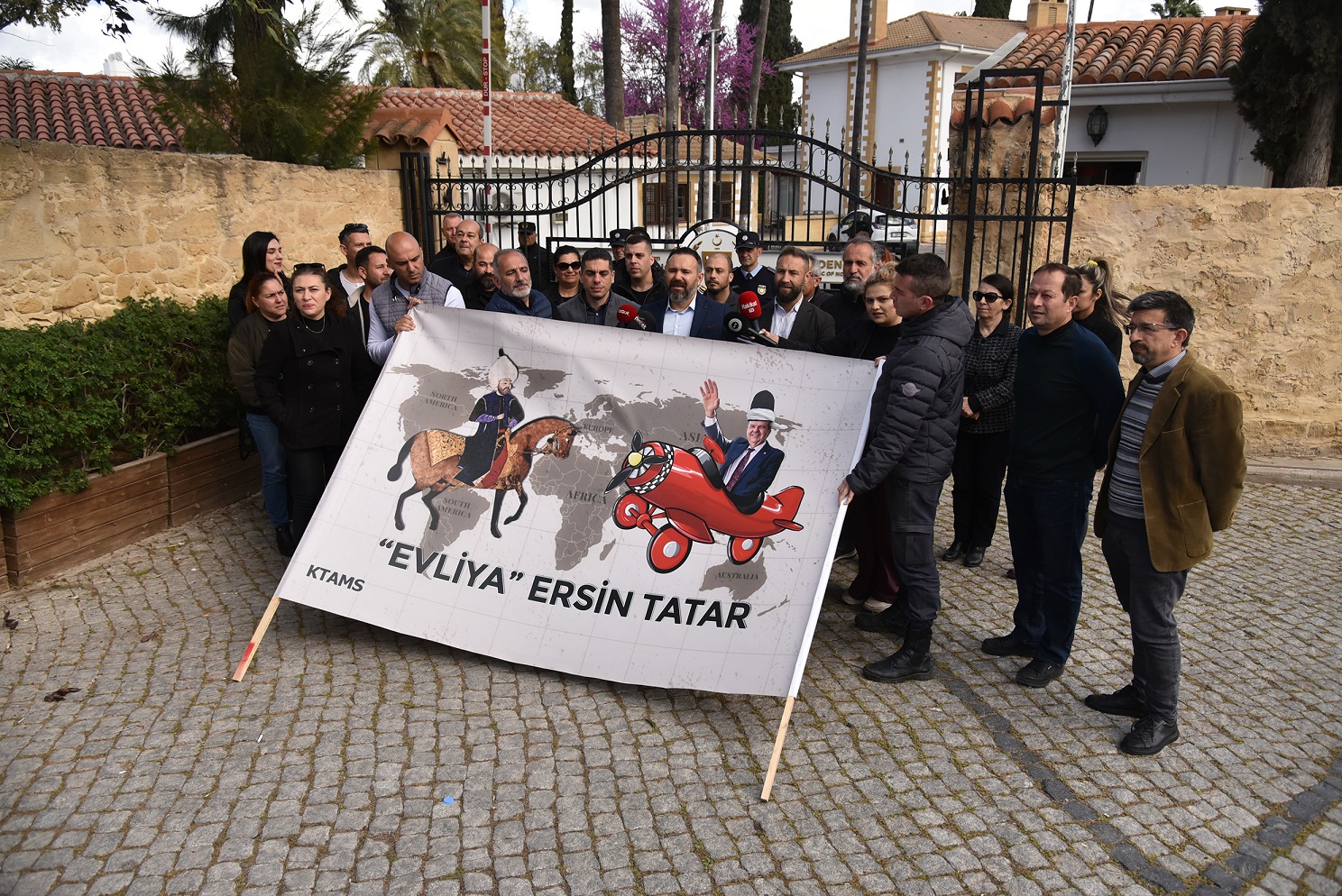 Kıbrıs Türk Amme Memurlar Sendikası (KTAMS) bugün Cumhurbaşkanlığı önünde Cumhurbaşkanı Ersin Tatar’ın Londra ziyaretini protesto etti.