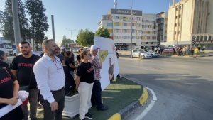 Kavşağın dört farklı noktasında toplanan eylemciler, “Birlik, Mücadele, Dayanışma”, “Susma Sustukça Sıra Sana Gelecek”, “Bu Daha Başlangıç Mücadeleye Devam”, “Göç Yasasına Hayır Göç Yasasına Dur De” sloganları da attı.