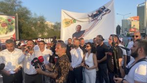 KTÖS Genel Sekreteri Burak Maviş konuşmasını, sembolik olarak “vatandaşın sepeti” ile yaptı.