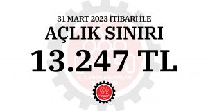 KKTC Sağlık Bakanlığına bağlı Yataklı Tedavi Kurumları Dairesi’nden almış olduğumuz 4 kişilik bir ailenin sağlıklı bir biçimde beslenmesi için gerekli olan beslenme kalıbı ve bu kalıptaki maddelerin İstatistik Kurumu’nca sendikamıza gönderilen fiyatlar dikkate alınarak hazırladığımız rapora göre, 4 kişilik bir aile için 31 Mart 2023 tarihi itibariyle açlık sınırı 13247 TL olarak hesaplanmıştır. Sendikamızın yapmış olduğu çalışmaya göre sağlıklı beslenmek ...
