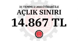 KKTC Sağlık Bakanlığına bağlı Yataklı Tedavi Kurumları Dairesi’nden almış olduğumuz 4 kişilik bir ailenin sağlıklı bir biçimde beslenmesi için gerekli olan beslenme kalıbı ve bu kalıptaki maddelerin İstatistik Kurumu’nca sendikamıza gönderilen fiyatlar dikkate alınarak hazırladığımız rapora göre, 4 kişilik bir aile için 31 Temmuz 2023 tarihi itibariyle açlık sınırı 14867 TL olarak hesaplanmıştır. Sendikamızın yapmış olduğu çalışmaya göre sağlıklı beslenmek ...